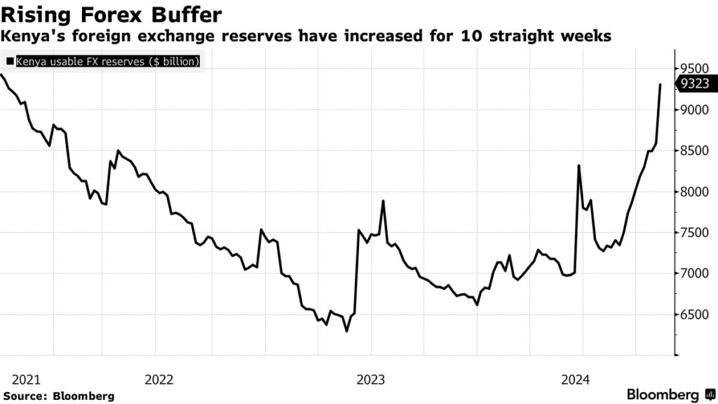 According to the Central Bank, Kenya forex reserves rose to $14.597 billion as of March 5, up from $12.53 billion a week earlier, largely driven by funds received from the government’s recent Eurobond transaction.